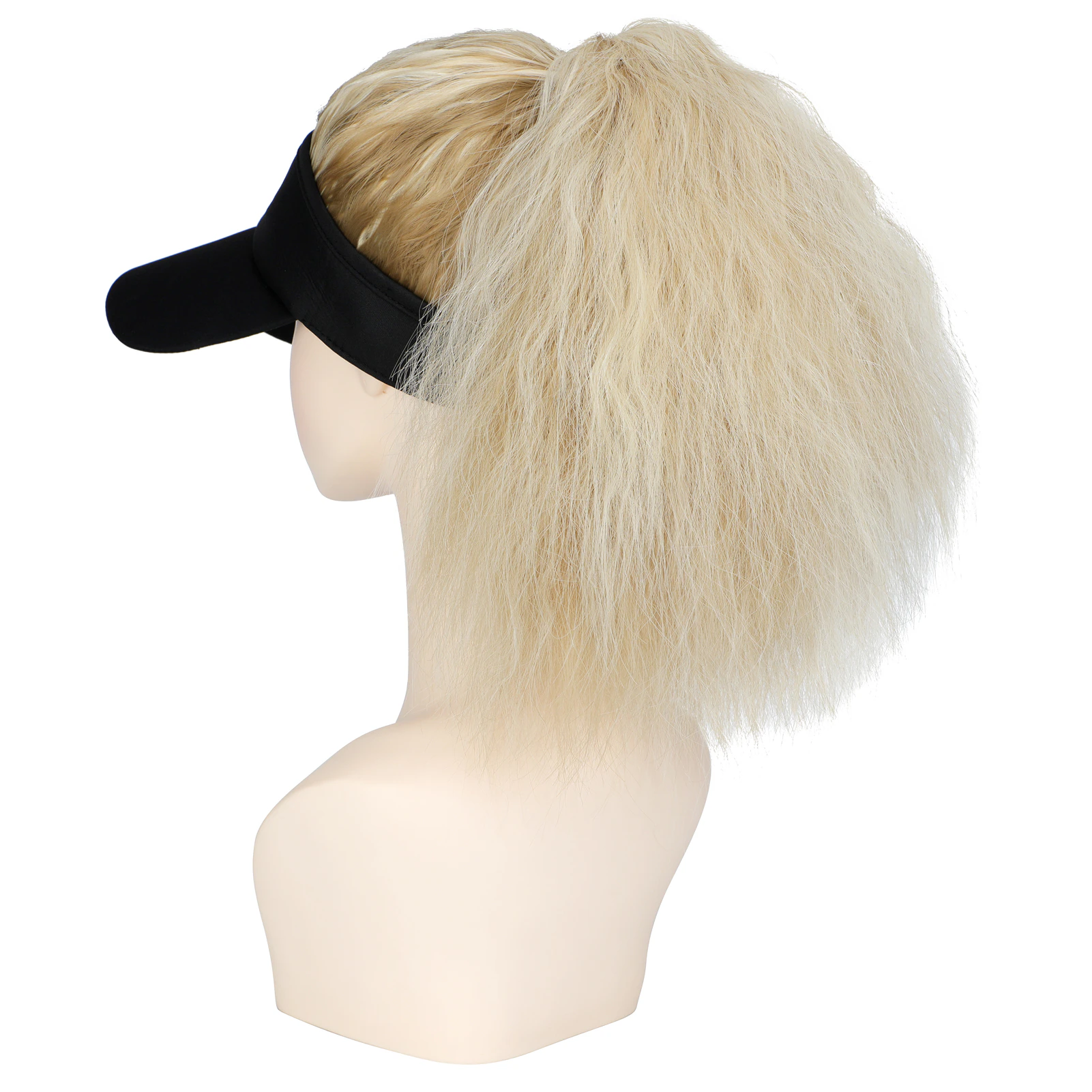 Never have a messy hair day again! Now you can have the best of both worlds by owning a Ash Blonde & Bleach Blonde Frizzy Ponytail Extension Visor. The convenience of having a stylish hat and wig in one is simply just awesome. Whether you don't feel like doing your hair for quick run to the store or you'd like to try a different hairstyle while being outdoors, our Ash Blonde & Bleach Blonde Frizzy Ponytail Extension Visor is for you.