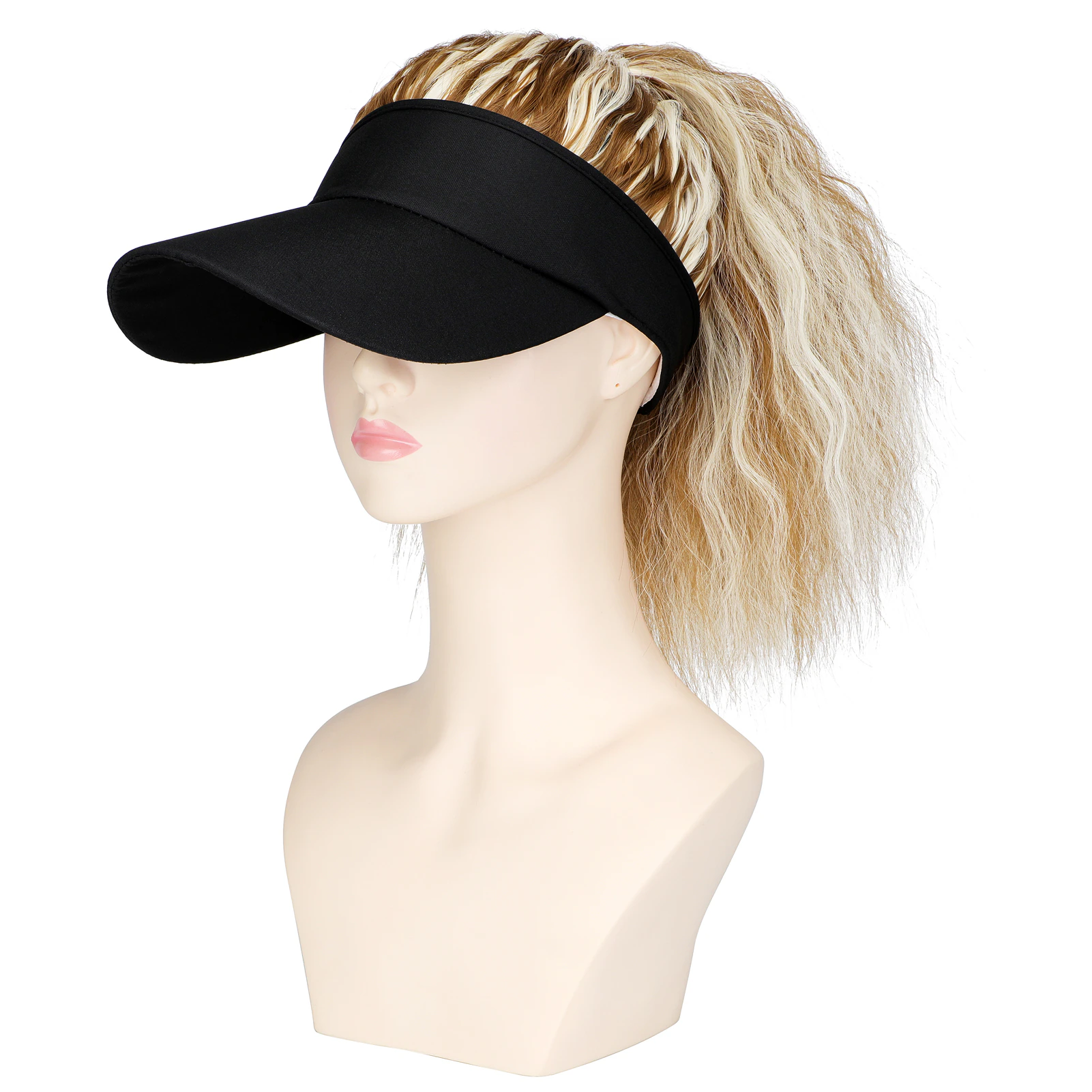 Never have a messy hair day again! Now you can have the best of both worlds by owning a Ginger Bleach Blonde Frizzy Ponytail Extension Visor. The convenience of having a stylish hat and wig in one is simply just awesome. Whether you don't feel like doing your hair for quick run to the store or you'd like to try a different hairstyle while being outdoors, our Ginger Bleach Blonde Frizzy Ponytail Extension Visor is for you.